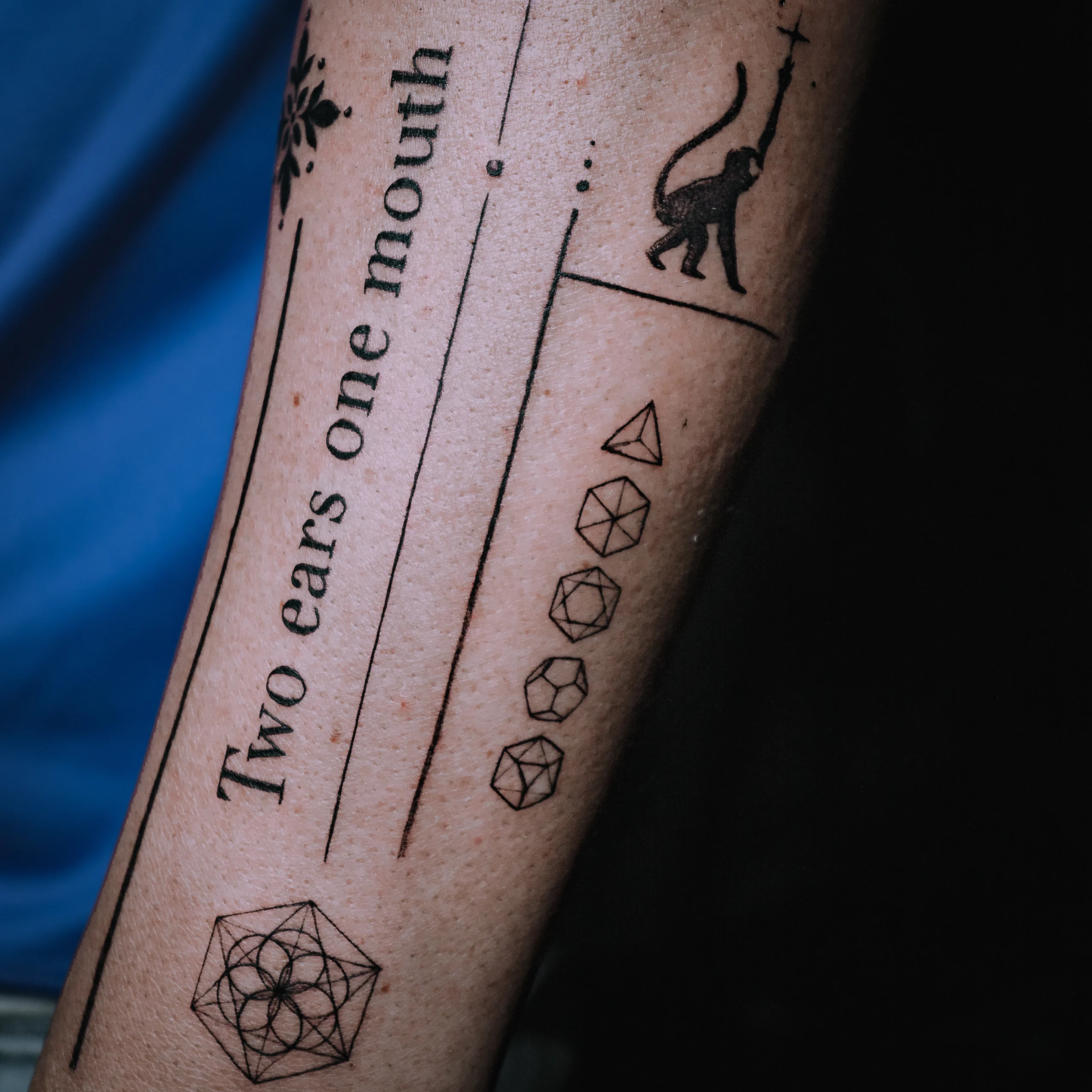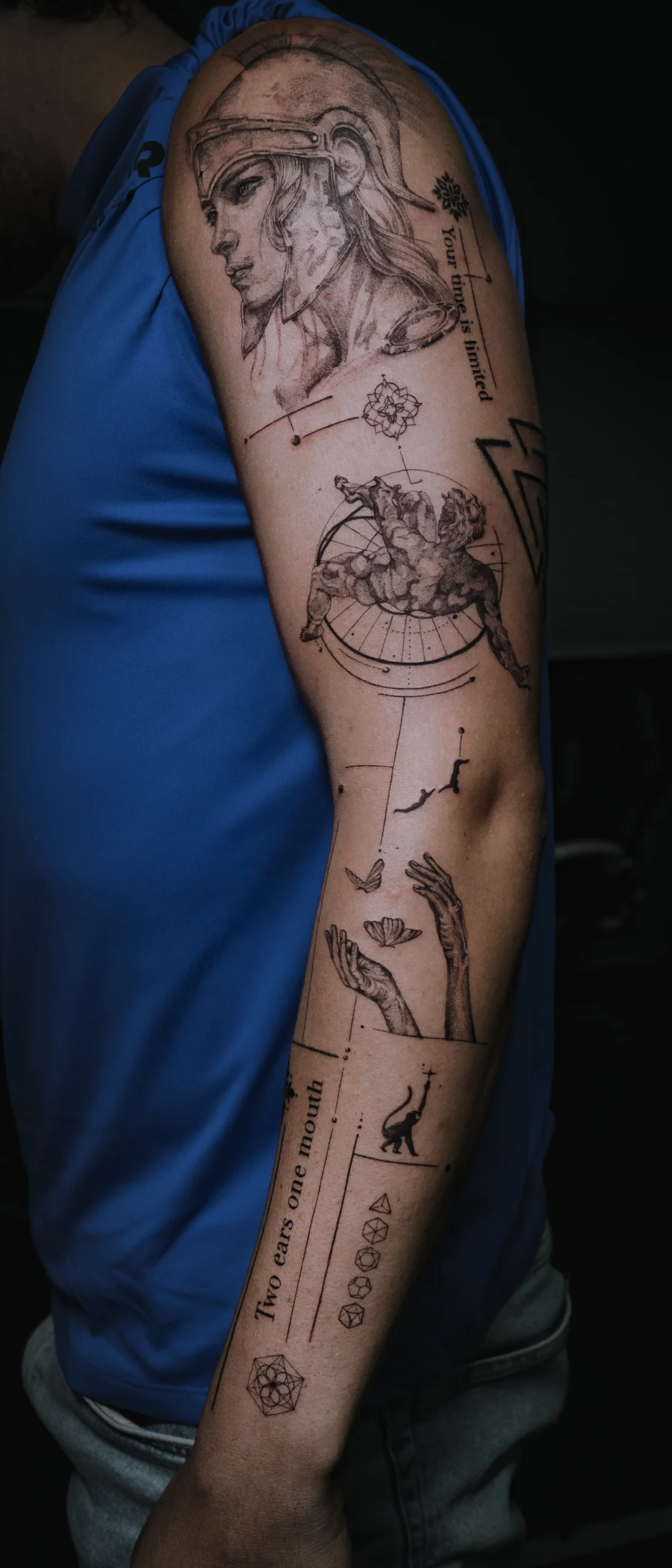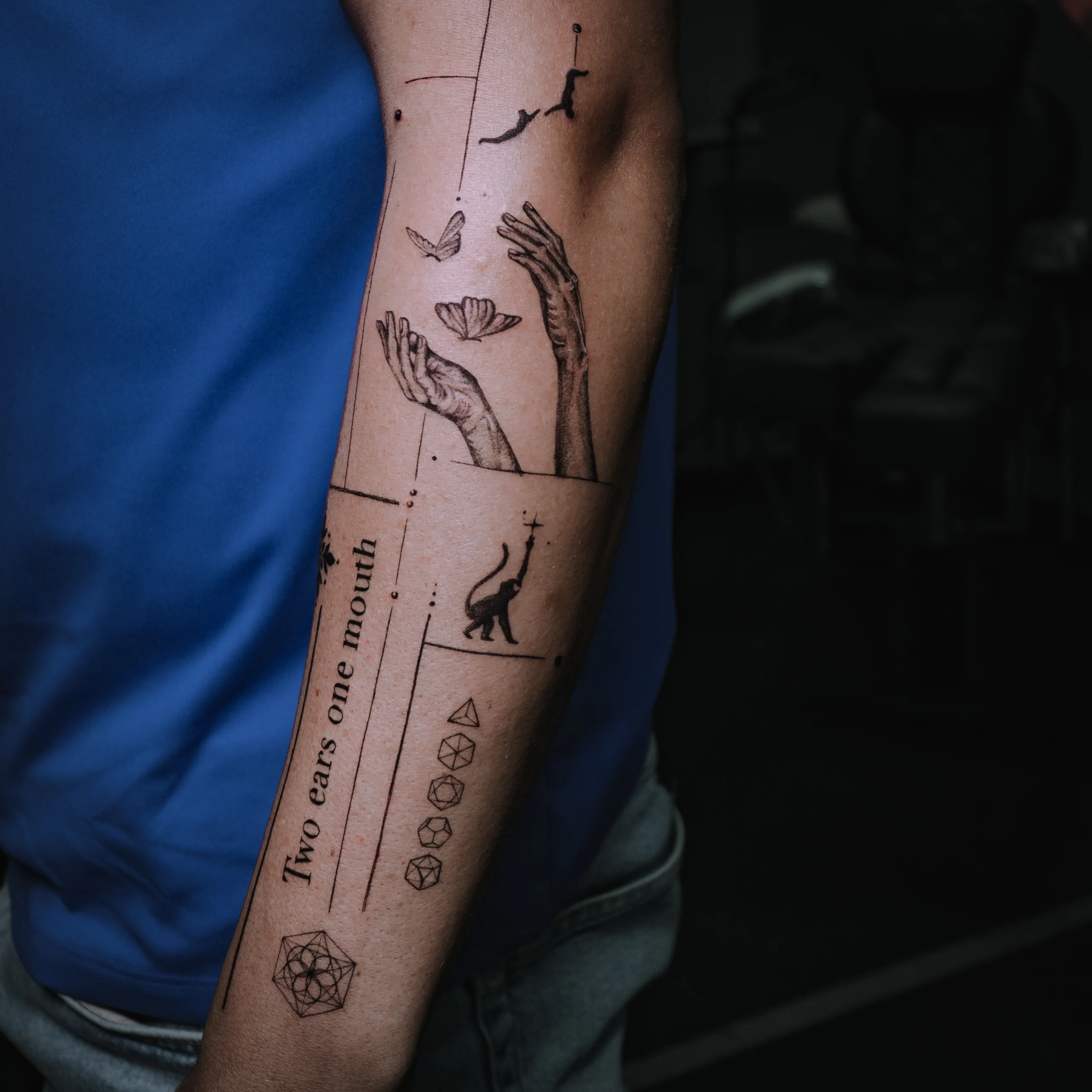 Fine line, realismo, micro realismo, black work, dark work, lettering, tradicional y neo tradicional.